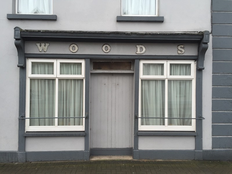 I have found that there are certain areas of the county have a certain style of lettering used, such as areas in West Cork, Kerry and Limerick there are a lot of ceramic letter forms used on shopfronts (Wood's) while shopfronts in more northern counties such as Donegal (O'Faoilin) and Cavan (E. O' Ceallait) tend to use the Gailic spelling of their names on the frontage.